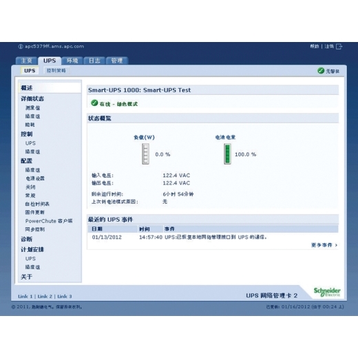 UPS固件更新 | 用户友好的机制,能够通过Web浏览器界面远程和无缝更新UPS固件(仅SMX、SMT以及SRT Smart-UPS)。 |